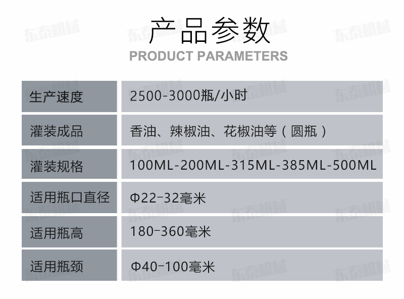 該系列灌裝機(jī)采用容積式計(jì)量灌裝原理,適用于各種規(guī)(100ml-1000ml)的南瓜籽油、榛子油、牡丹籽油、芝麻油、核桃油、山茶油、亞麻籽油、棉籽油、橄欖油、大豆油、玉米油、菜籽油等食用油灌裝。設(shè)備采用伺服驅(qū)動(dòng)活塞計(jì)量,保證了 1‰的灌裝精度,在保證灌裝精度的同時(shí),提高了 20%-35%灌裝速度,操作簡(jiǎn)單,維護(hù)方便,節(jié)省人工成本,生產(chǎn)效率更高。