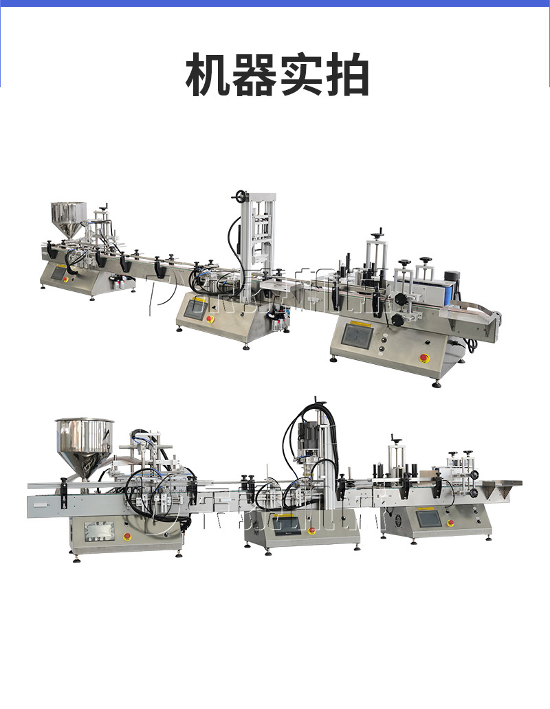 產(chǎn)品說明:生產(chǎn)線根據(jù)灌裝范圍選擇型號,灌裝部分為雙頭下潛式灌裝機,適用于不同物料不同瓶子的灌裝,配備自動壓蓋機和圓瓶貼標(biāo)機,可實現(xiàn)不同蓋子的旋蓋貼標(biāo)工作。
