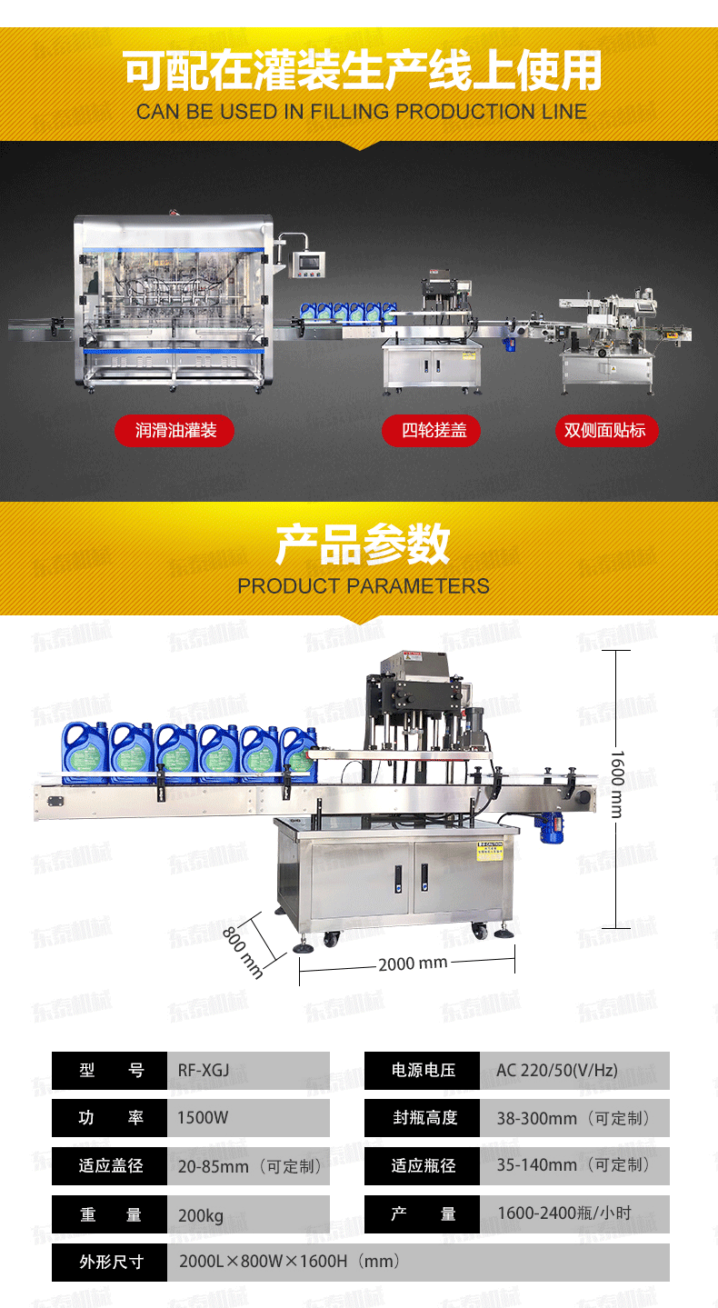 全自動(dòng)旋蓋機(jī)是參照國機(jī)型改進(jìn)設(shè)計(jì)、旋蓋速度快,合格率高、操作方便?蛇m用于食品、制藥、日化、農(nóng)藥、化妝品等行業(yè)的不同瓶形的旋蓋。四臺(tái)調(diào)速電機(jī)分別用于供蓋、夾瓶、傳送、旋蓋,機(jī)器自動(dòng)化程度高,穩(wěn)定性好,調(diào)節(jié)方便,更換瓶形或蓋時(shí)無須備件,只需作調(diào)整即可完成(如配上蓋機(jī),可進(jìn)行自動(dòng)上蓋)可以根據(jù)實(shí)際需要選配。
