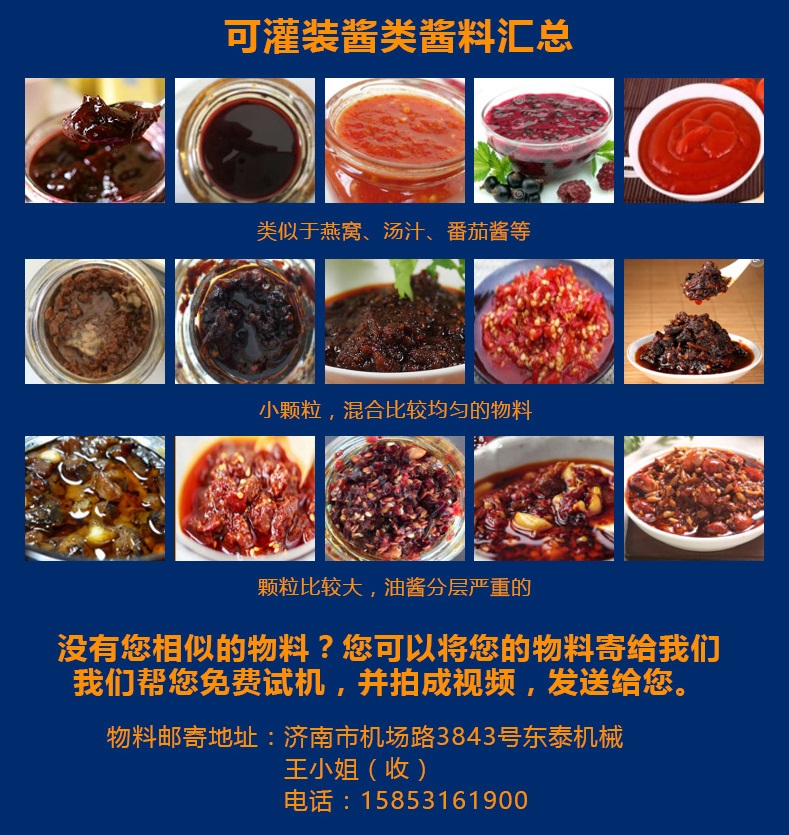 該生產線適合中小口徑三旋、四旋玻璃瓶調味醬的分裝,適合醬料、含顆粒黏稠物料的灌裝,物料接觸部分均采用316不銹鋼,整機304不銹鋼,符合食品衛(wèi)生標準。該機設計合理,機型小巧,立式結構,節(jié)省場地,操作方便。啟動部分均采用德國FESTO和臺灣AirTack的氣動元件。灌裝閥有氣動閥控制,灌裝精度更高,灌裝量和灌裝速度均可任意調整,灌裝悶頭采用防拉絲及升降灌裝裝置。