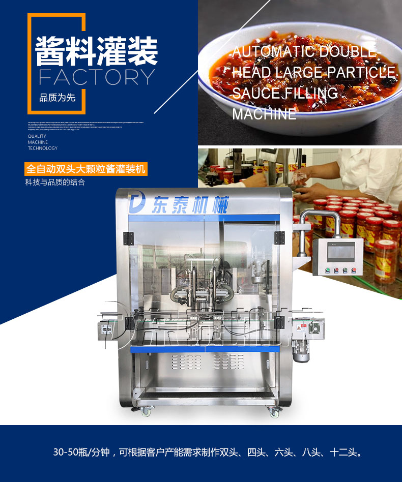 隨著機(jī)械技術(shù)的快速發(fā)展灌裝機(jī)的發(fā)展也是日新月異,使得其種類比較多。蘸醬在我國(guó)擁有悠久的歷史,在我國(guó)烹飪中占有著重要的地位,發(fā)展到現(xiàn)在在做菜和食品中也不可或缺,巨大的市場(chǎng)使得蘸醬灌裝機(jī)擁有巨大的市場(chǎng),醬類廠家在引進(jìn)設(shè)備時(shí)都想采購(gòu)到高效率、適合自己的蘸醬灌裝機(jī)械。人們對(duì)食品要求的提高使得醬類生產(chǎn)廠家迎來(lái)了較大的變格,安全衛(wèi)生是非常重要的標(biāo)準(zhǔn),因此對(duì)蘸醬灌裝機(jī)的選擇也更加的要求嚴(yán)格,許多傳統(tǒng)的機(jī)械已經(jīng)不能滿足企業(yè)高標(biāo)準(zhǔn)、高效率的要求。因此選擇一款適合的蘸醬灌裝機(jī)械產(chǎn)品顯得尤為重要。