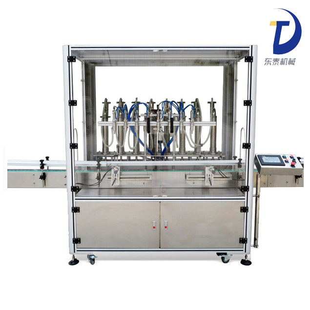 3、控制系統采用兩種計量模式:體積計量灌裝、質量計量灌裝任意轉換。采用智能雙流速灌裝技術,灌裝前期用大流灌裝,后期用小流灌裝,確保灌裝液體不沖沫外溢;袋裝紅油灌裝機采用防滴漏油嘴及日本SMC的真空回吸裝置,徹底杜絕灌裝結束后油嘴滴油的弊端,確保成品不受灌裝殘液的污染;數瓶機構經特殊程序處理,杜絕計錯瓶,油嘴不到位絕不出油;采用泵送液體,既提高灌裝速度,又減少用戶建造高位油罐的額外投資。